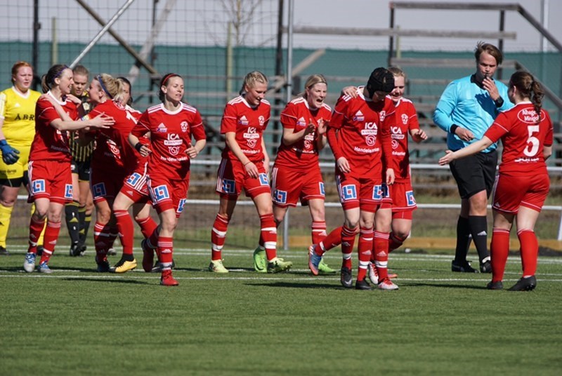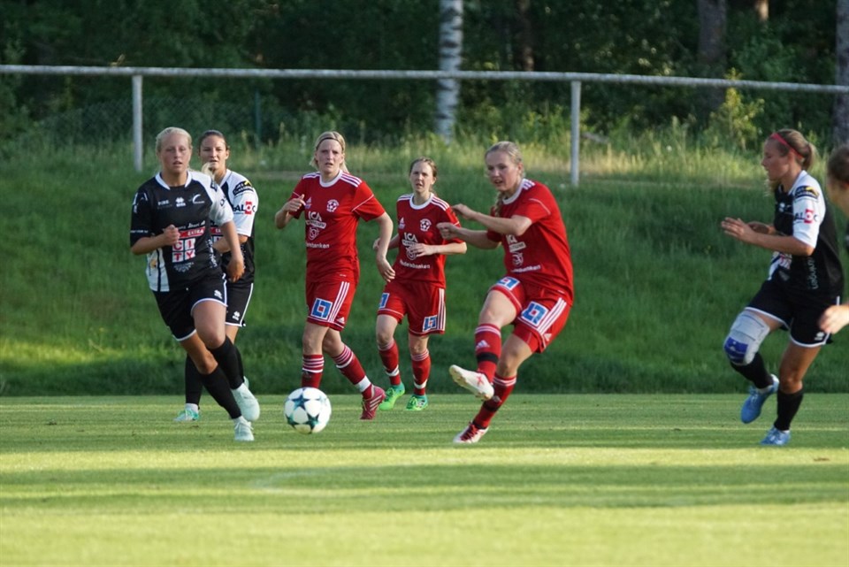 Under Torsdagskvällen begav vi oss till Göteborg för match mot de obesegrade serieledarna Jitex Mölndal BK! Startelvan: Madde Wenell Landenmark Natalia ``Nattis´´ Andersson Julia Pettersson Anna Gustafsson Caroline ``CC´´ Carlsson (5) Sofia Wenell Landenmark (57) Johanna Andersson Stina Andersson (75) Ella Kvarnrud Rebecka ``Sune´´ Suneson (45) Louise de Jongh Bänken: Kajsa Stern (45) Emma Eklund (33) Ellen Westlund (15) Victoria Möller (5) Matchen: Matchen blåses igång och Jitex skapar sig ett övertag direkt via en tokpress. Man försöker bryta igenom både brett och centralt, men vi står emot. En hörna leder till en nick i ribban, men utöver det kan Madde WL ta hand om avsluten från dåliga vinklar eller från distans. Istället skapar vi fler heta chanser första halvtimmen! Johanna Andersson sätter press på en försvarare och vinner man/man situationen, målvakten avstyr dock ``friläget´´ via en benparad. Efter ett fint anfall på högerkanten får Stina Andersson bollen centralt strax utanför straffområdet, men hennes tunga vänsterskott räddas snyggt vid den bortre stolpen. Några minuter senare är Louise de Jongh centimetrar från att runda målvakten. Istället gör Jitex 1-0 minut 31, där vi inte riktigt hinner flytta över vårt lag. Skottet utanför straffområdet sitter strax under ribban. Tungt mål emot i det läget! Även 2-0 kommer innan halvtid! En genomlöpning centralt, fintar skott och rundar Madde innan hon placerar in bollen. I andra halvlek försöker vi göra ett försök till vändning via ett byte av formation sista 30 minuterna och vi skapar chanser till reducering! Louise de Jongh vinner boll mot en försvarare och frispelar Johanna, men avslutet räddas igen! Även Louise skulle få chansen att göra mål, men försvarare täcker avslutet. Jitex har ytterligare en nick i ribban och skapar några vassa chanser i takt med att vi försöker kliva framåt! Jitex 3, 4 och 5-0 via snabba omställningar inom loppet av 8 minuter och där var matchen givetvis förlorad. Sista 12 minuterna + tillägg blir mållösa, efter ett storspelande av Madde Wenell Landenmark, som gör några klassräddningar! 5-0 slut. Mina tankar: Efter en 5-0 förlust borde man definitivt vara missnöjd och Ja, resultatet drog iväg lite väl mycket i slutet då vi var tvungna att chansa. Vi ska dock hålla huvudena högt för vi gör många saker bra denna Torsdag! Vi har som oftast ett kompakt och svårforcerat försvarsspel medans vi offensivt har några riktigt fina anfall som borde resultaterat i något/några mål. Jitex Mölndal BK är dock numret för stort över 90 minuter och vi kunde se varför de hade 10 raka segrar innan vår match. Jitex 3-0 mål var en omställning av yttersta toppklass och efter ett sånt mål kan man bara applådera! De borde redan spela i Elitettan sett till kvalitén i de tekniska momenten, variationen i passningsspelet samt de kliniska avsluten. Plus till truppens karaktär där vi jobbar hårt för varandra i 90 minuter, trots underläget! Extra plus till Anna Gustafsson och Johanna Andersson som starkt bidrar till lagets balans i båda riktningarna. Vinner dessutom många närkamper och fattar sunda beslut i pressade situationer. Nu är halva serien spelad och det återstår en match innan sommaruppehållet. Den spelas hemma mot Vimmerby nästa Lördag kl 16:00 på Lekevi! Väl mött!