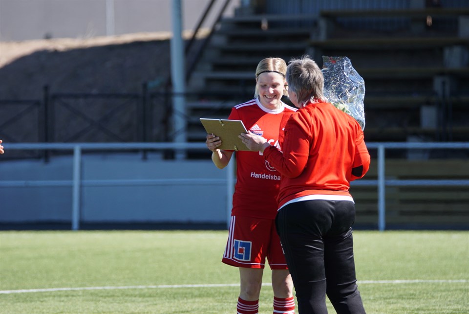 Grattis Johanna! Det blev inte bara tre poäng i lördagens bortamatch mot Vimmerby. Vi fick även se ett rekord raderas ut. Johanna Andersson spelade sin 360:onde A-lagsmatch och passerade Elisabeth Johansson (Elisabeth "Kickis" Ericson) 359 matcher och blev den spelare som genom tiderna spelat flest matcher i den röda tröjan. Johanna kom som 16-åring till oss från Hällekis IF år 2000 när vi spelade i div fyra. Johanna spelade under två säsonger med Karlstadslaget QBIK när hon utbildade sig till idrottslärare men alla andra säsonger sedan 2000 har hon varit oss trogen. Johanna har sedan hon kom åter även fött två fina barn, Alfons och Lova men har aldrig slutat brinna för fotboll och nu är hon alltså vår "mesta" BoIS:are. Som fotbollsspelare har Johanna sina kvaliteter i sin rutin, sin trygghet i att våga vårda bollen och sin goda fysik. Johanna är ett farligt anfallsvapen på alla fasta situationer med sitt vassa huvudspel. Hon ger heller aldrig upp i matcherna utan krigar till sista minuten. Johanna är förutom en fantastisk fotbollsspelare även en otroligt föreningslojal spelare som engagerar sig i det mesta. Vi hoppas få behålla Johanna i vår förening länge, länge. Se Johanna in action!