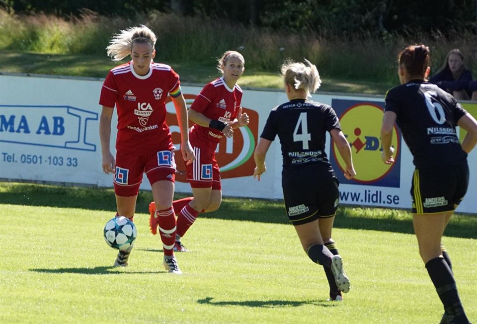 Under gårdagen begav vi oss till Göteborg för match mot det nyblivna Division 1 laget Huskvarna FF i försäsongen sista träningsmatch. Startelvan: Tyra Roslund Caroline Carlsson Anna Gustafsson Elin Persson Emilia Karlsson Stina Andersson (72) Johanna Andersson Natalia Andersson Elin Wallskog Fahlgren (80) Ella Kvarnrud (65) Louise de Jongh Avbytare: Sofia Wenell Landenmark (18) Rebecka Suneson (25) Wilma Wallskog Fahlgren (10) Matchen startar i ett ursinnigt tempo där Huskvarna sätter press på oss överallt. Vi får problem inledningsvis och Huskvarna hotar flera gånger i hopp om att spräcka nollan. Ett missförstånd leder till att Tyra tvingas rädda bollen med en akrobatisk rörelse på mållinjen. Men vi växer sakteliga in i matchen och kan flera gånger spela oss ur Huskvarnas press via snabba beslut och kvalité i både pass och mottagningarna. Våra positioner flyttas fram och vi tar över. Chanserna dröjde inte länge heller utan Elin Wallskog Fahlgren löpte igenom från höger, men friläget går precis utanför den första stolpen. Ella Kvarnrud träffar stolpen och Louise de Jongh är nära likaså flera gånger om. Ja, det var målen som saknades. Huskvarna stack upp och hotade i framförallt djupled men utan lycka i avsluten. Tyra och försvaret var solida och täckte upp för varandra på ett effektivt sätt. Den andra halvleken skulle fortsätta som den första och vi skapade flera ruskigt vassa målchanser för att avgöra matchen. Louise de Jongh utnyttjade ett försvarsmisstag, men avslutet gick precis utanför den första stolpen. Johanna var sånär igenom, men försvararen kom precis emellan. En livsfarlig hörna från Elin Wallskog Fahlgren friställde fyra spelare i BoIS, men målvakten stod rätt på det lösa avslutet. Stina avslutade, Natalia avslutade, Johanna avslutade, Louise avslutade, Elin WF var framme och Ella likaså. Chanserna var många. I slutskedet rann dock Huskvarna igenom, men Tyra kom ut fint och parerade friläget briljant! 0-0 slut! Vilken match! Två riktigt bra fotbollslag möttes denna Lördag och det märktes. Huskvarna satte i sin högsta växel direkt och vi hade problem inledningsvis. Men när vi efter 15-20 minuter börjar komma rätt, tar vi också över och då är vi ruskigt bra! Vi hittar fina linjer i vårt spel där vi kan variera våra anfallsförsök. Vi hjälper varandra i press/understöd och ställer till stora problem för Huskvarna, som får freda sig gång på gång när vi går för det! Jag är personligen riktigt nöjd med insatsen från samtliga spelare och detta var ett klart fall framåt (utan att upprepa ett visst ord för länge). Det enda som saknades var målen denna dag, men om vi fortsätter spela som igår, då kommer målen att komma! Vi borde ha vunnit sett till målchanser och spelövertag. Plus till hela truppens engagemang och kvalité igår! Skulle egentligen kunnat berömma varje spelare här, då jag är extremt nöjd med allas insatser! Ger dock ett extra plus till Stina Andersson som går från klarhet till klarhet. Spelade väldigt klokt både som felvänd och rättvänd, vann mycket boll och styrde spelet på ett imponerade sätt, med god hjälp från sina centrala mittfältskollegor Natalia Andersson och Johanna Andersson. Nu återgår vi till träningsplanen, innan vi redan på Onsdag spelar nästa match! Då väntar en tuff bortamatch i DM, mot seriekollegan IFK Ulricehamn. Detta blir A-lagets sista match innan serien drar igång om 13 dagar hemma mot Götene FK! Väl mött!