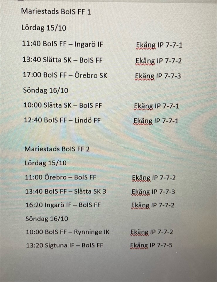 Då Stenstorp lämnat återbud till match har vi gjort allt för att få tag på motståndare till det laget. Nu är det fixat att det blir en internmatch med inlånade spelare från Weimer 5 st och F12 3 st. Vi blandar ihop och gör 2 lag. Kul att alla får spela. De som möter Våmb spelar den matchen som planerat. Efter matcherna äter vi korv tillsammans.