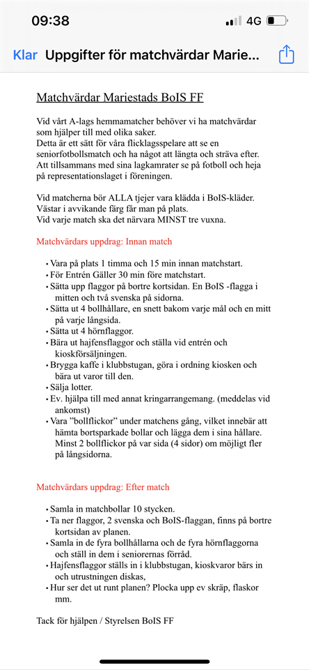 Hej Tyvärr så är aktiviteten bollflickor nu på lördag inställd då vi ej får ihop tillräckligt med barn. Vi får prova igen vid ett senare tillfälle. Dock så ska de föräldrar som ska vara matchvärdar fortfarande göra det. //Fredrik F12 födda 14 30 aug 2022 2kommentarer