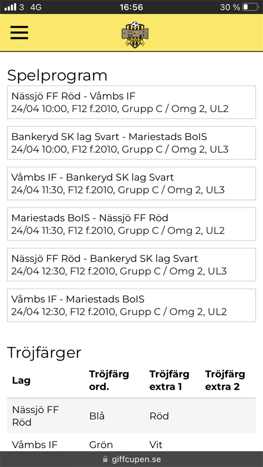 Imorgon samlas vi klockan 8.00 på Lekevi. Vi spelar på Ulvesborg i Tidaholm. Det är 3 matcher som gäller och första match är klockan 10.00. Vi byter om på plats i Tidaholm. Tänk på att ta med matchkläderna imorgon. Gärna något att äta, precis som idag. Sov gott och fyll på med ny energi. Kul dag idag tjejer och mycket bra spelat! 😀 /Stefan & Ida F16 födda 10 23 apr 2022 0kommentarer